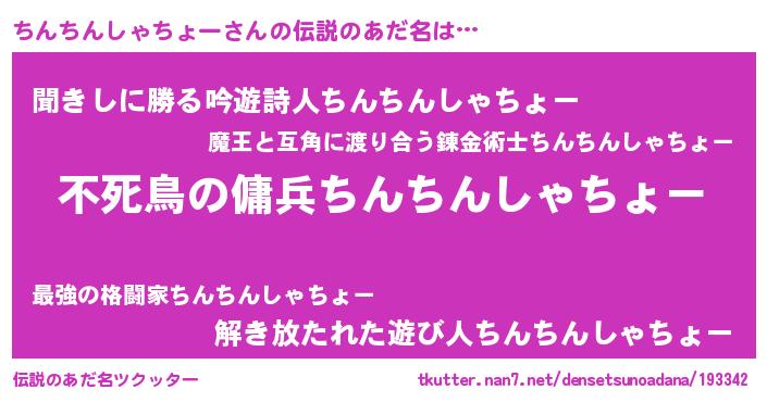 | ファンタジー風あだ名 | 『チンフェル』『チンディッシュ』 |