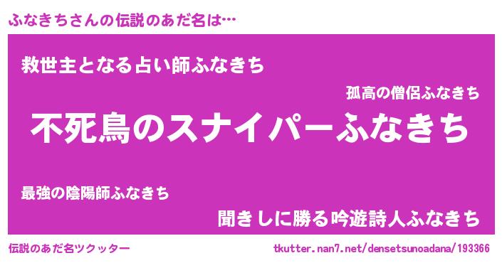 | 男性向けラノベタイトル風あだ名 | 『ふなきちの憂鬱』『フナキチスレイヤー』 |