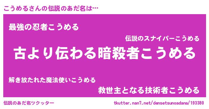 | 料理風あだ名 | 『こうめるごはん』 |