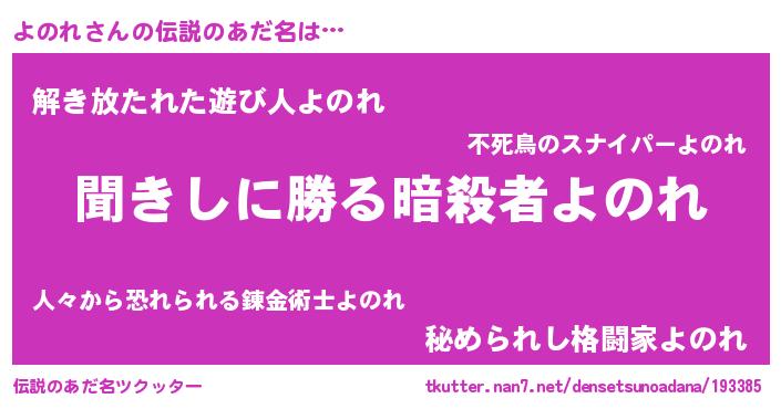 | ヘコむあだ名 | 『よのれ(苦笑)』『よのお』『牛乳』 |