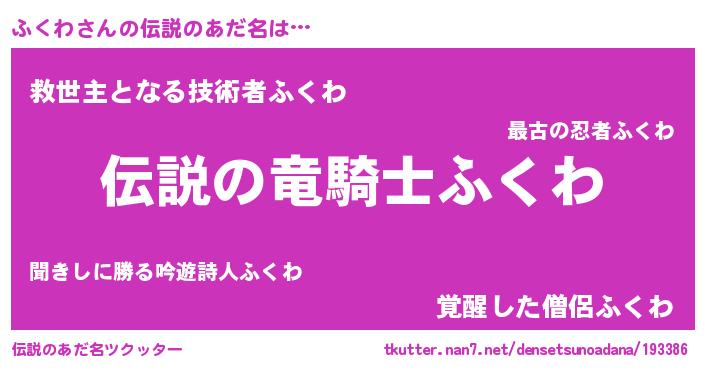 | ヒーロー風カッコイイあだ名 | 『スーパーフクワ』『友情の使者ふくわ』 |
