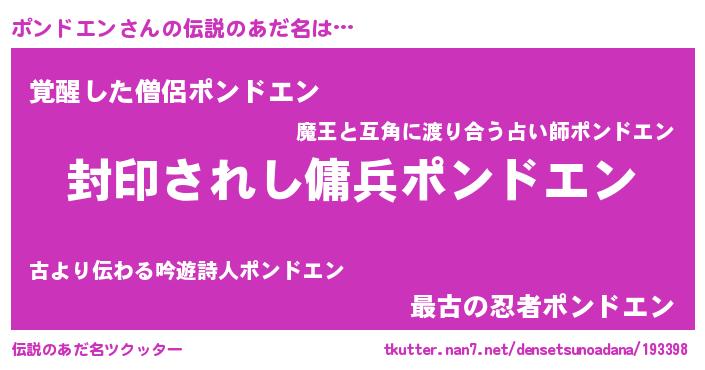 意味不明あだ名 | 『ペロリンポンドエン』『自称ポンドエン』 |