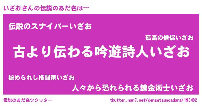 | 意味不明あだ名 | 『永久保存いざお』『ペロリンいざお』 |