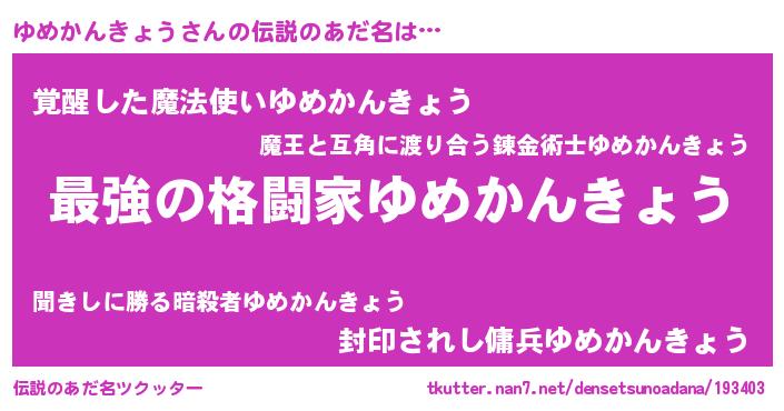| 意味不明あだ名 | 『ゆめかんきょうフォーエバー』 |