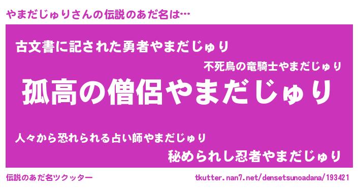 | ヒーロー風カッコイイあだ名 | 『暗黒騎士ヤマ』『究極戦士ヤマダジュリ』 |