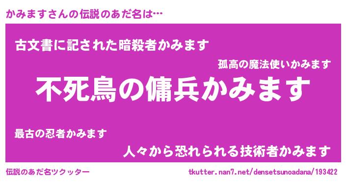 | 女子向けラノベタイトル風あだ名 | 『かみます姫と円卓の騎士』 |