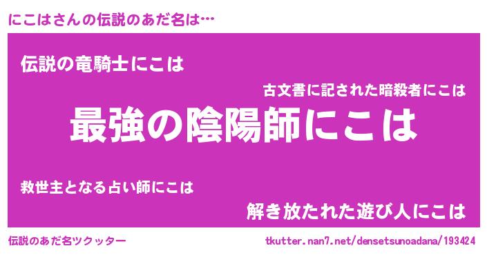 | ヒーロー風カッコイイあだ名 | 『最強戦士ニコハ』『ウルトラにこはマン』 |