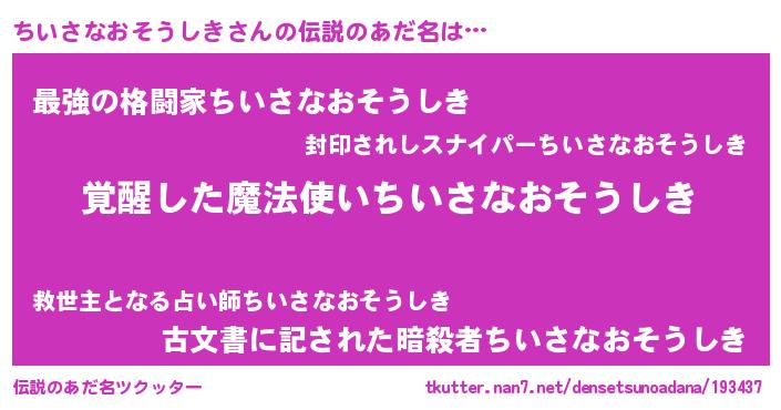 胡散臭い通販商品みたいなあだ名 | 『全米が絶賛したサプリメント…その名も「ちいさなおそうしき」』 |