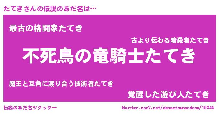 | ファンタジー風あだ名 | 『ゼタテトゥ』『カークタテラー』 |