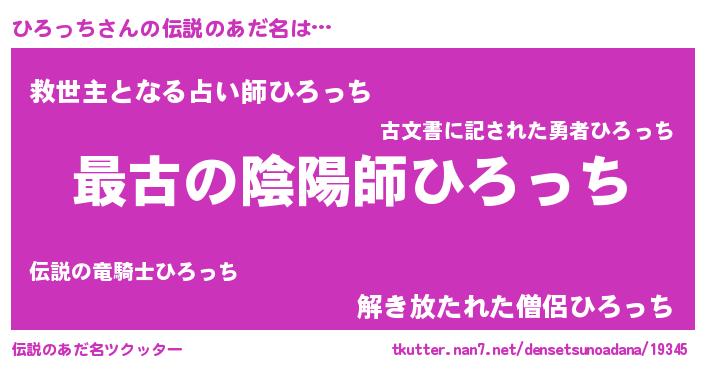 | 男性向けラノベタイトル風あだ名 | 『やはりひろっちの青春ラブコメはまちがっている 』 |