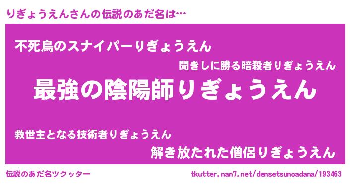 | 男性向けラノベタイトル風あだ名 | 『りぎょうえんに滅ぼされるだけの簡単なお仕事です』 |