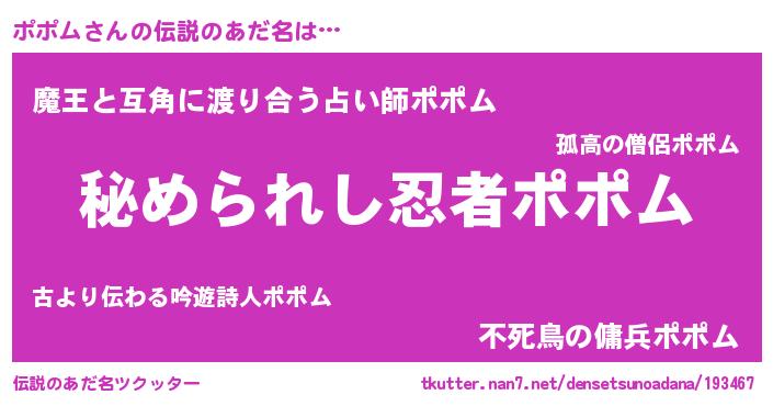 | 男性向けラノベタイトル風あだ名 | 『やはりポポムの青春ラブコメはまちがっている 』 |
