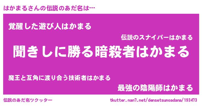 | ヒーロー風カッコイイあだ名 | 『仮面ハカダー』『最強戦士ハカマル』 |