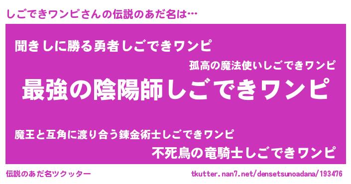 | ヒーロー風カッコイイあだ名 | 『仮面シゴダー』『ネオシゴデキワンピ』 |