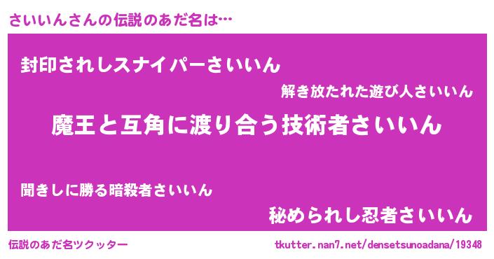 | 恥ずかしいあだ名 | 『サイインデラックス』『さいっちょ』 |