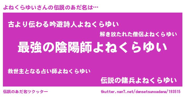 | 肩書あだ名 | 『よねくらゆい大将』『よねくらゆい先生』 |