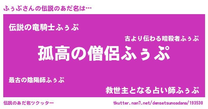 | 男性向けラノベタイトル風あだ名 | 『ダンジョンにふぅぷを求めるのは間違っているだろうか』 |