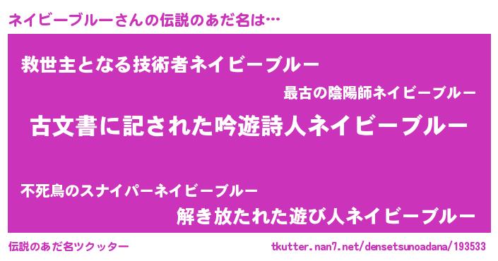 | 意味不明あだ名 | 『ニラ科ネイビーブルー属』 |