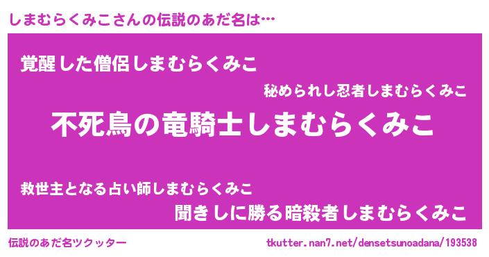 | ヒーロー風カッコイイあだ名 | 『スーパーシマムラクミコ』 |