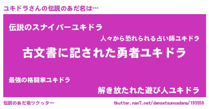 | ヒーロー風カッコイイあだ名 | 『ネオユキドラ』『スーパーユキドラ』 |
