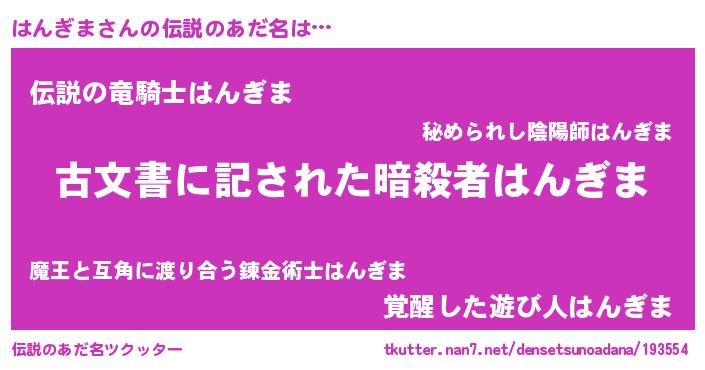 | ヒーロー風カッコイイあだ名 | 『ネオハンギマ』『スーパーハンギマ』 |