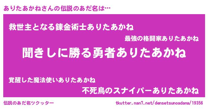| 意味不明あだ名 | 『自称ありたあかね』 |