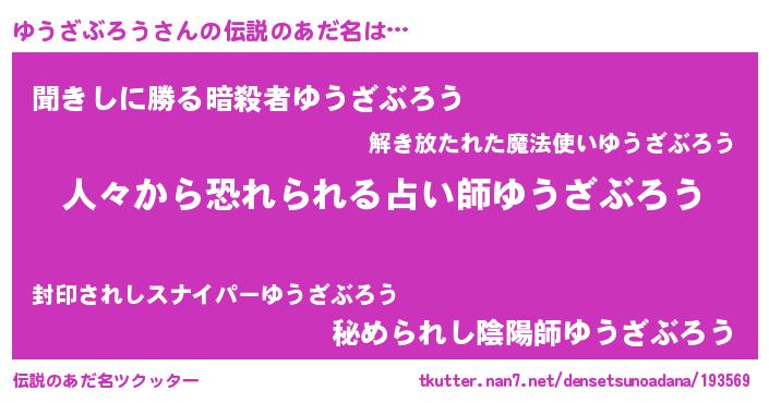 | ヒーロー風カッコイイあだ名 | 『仮面ユウダー』『ネオユウザブロウ』 |