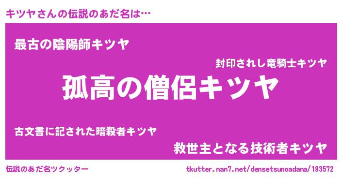 | ヒーロー風カッコイイあだ名 | 『暗黒騎士キツ』『仮面キツダー』 |