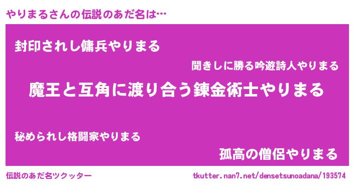 | ヒーロー風カッコイイあだ名 | 『愛の使者やりまる』『スーパーヤリマル』 |