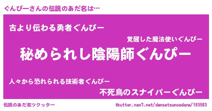 | 意味不明あだ名 | 『ぐんぴーフォーエバー』『自称ぐんぴー』 |
