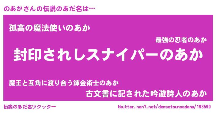 | 意味不明あだ名 | 『ペロリンのあか』『自称のあか』 |