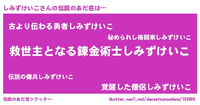 | 胡散臭い通販商品みたいなあだ名 | 『モンドセレクションを受賞した隕石のかけら…その名も「しみずけいこ」』 |