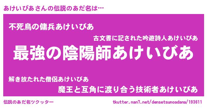 | 意味不明あだ名 | 『あけいびあフォーエバー』 |