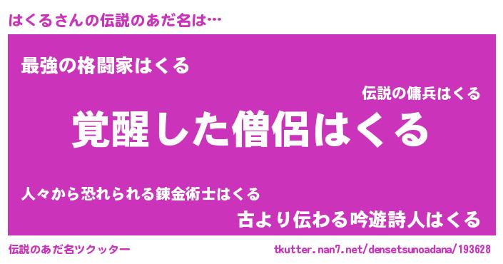 | 意味不明あだ名 | 『とにかく怪しいはくる』『自称はくる』 |