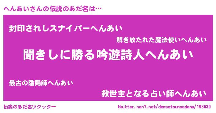 | ヘコむあだ名 | 『へんあい(笑)』『へんもー』 |