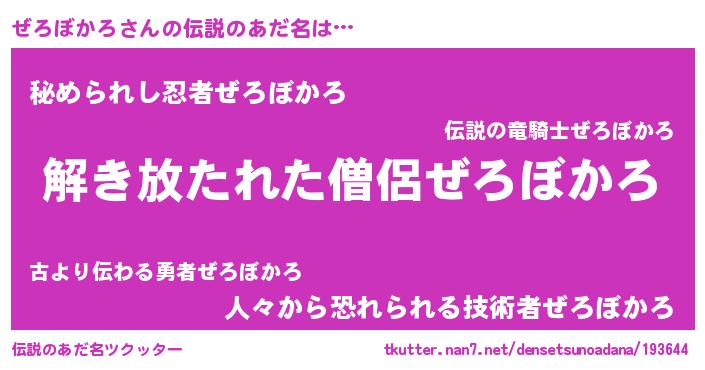 | ヒーロー風カッコイイあだ名 | 『銀牙騎士ゼロ』『超時空戦士ゼロボカロ』 |