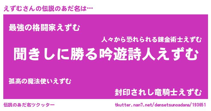 | 男性向けラノベタイトル風あだ名 | 『えずむという概念が存在しない退屈な世界 』 |