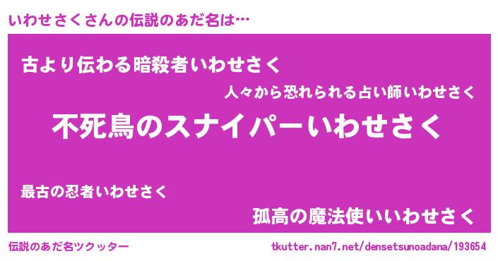 | ヒーロー風カッコイイあだ名 | 『最強戦士イワセサク』『仮面イワダー』 |