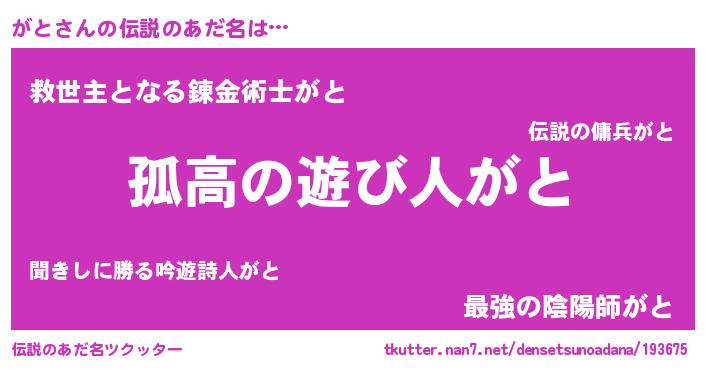 | 意味不明あだ名 | 『とにかく怪しいがと』『自称がと』 |
