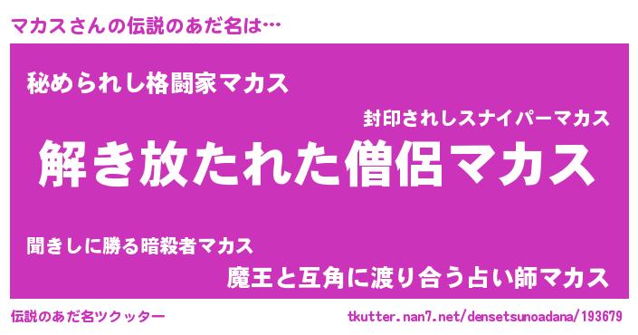 | ヒーロー風カッコイイあだ名 | 『幻影騎士マカ』『超時空戦士マカス』 |