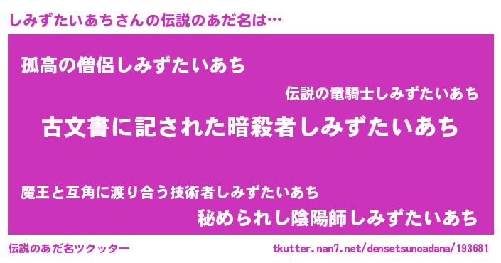 | ヒーロー風カッコイイあだ名 | 『ネオシミズタイアチ』『魔戒騎士シミ』 |