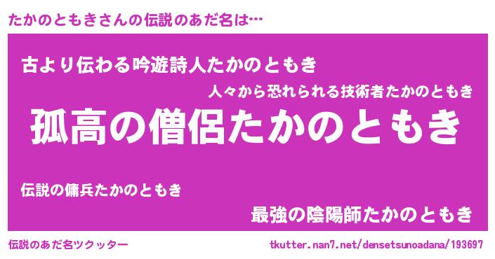 | 胡散臭い通販商品みたいなあだ名 | 『信頼と実績のネックレス…その名も「たかのともき」』 |