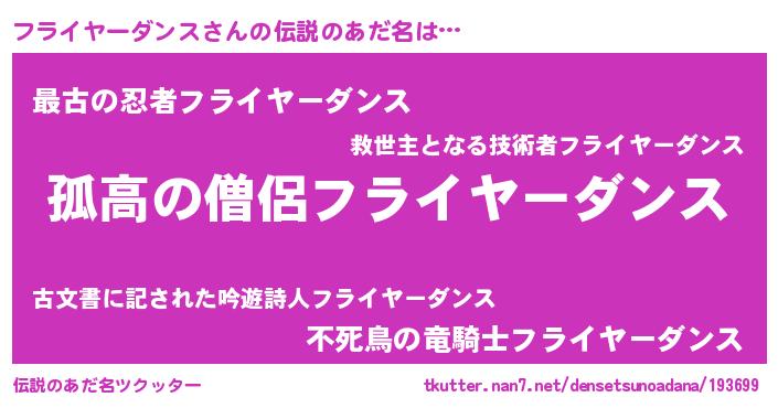 | ポケモン風あだ名 | 『ヒフライヤーダンス』『フラセウス』 |
