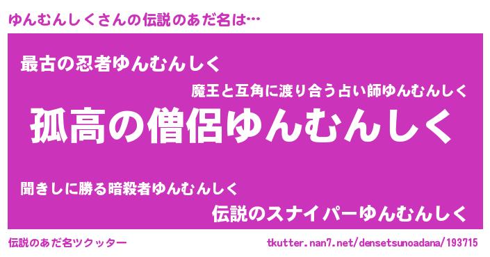 | 胡散臭い通販商品みたいなあだ名 | 『ガンによく効くアガリクス…その名も「ゆんむんしく」』 |