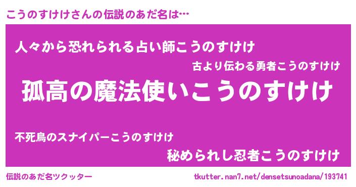 | 女子向けラノベタイトル風あだ名 | 『こうのすけけは平凡を望む』 |
