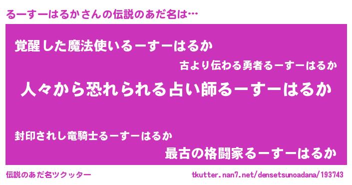 | ヒーロー風カッコイイあだ名 | 『正義の使者るーすーはるか』 |