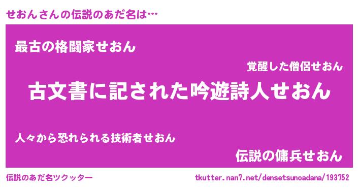 | 意味不明あだ名 | 『永久保存せおん』『自称せおん』 |