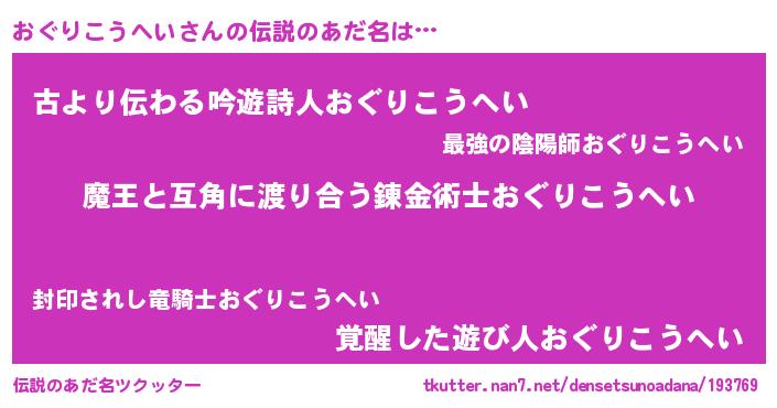| ヒーロー風カッコイイあだ名 | 『友情の使者おぐりこうへい』 |