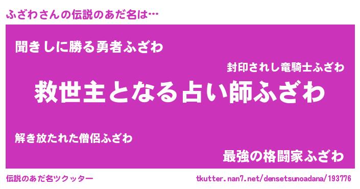 | ヘコむあだ名 | 『ふざわ(苦笑)』『つくし』『ふざを』 |