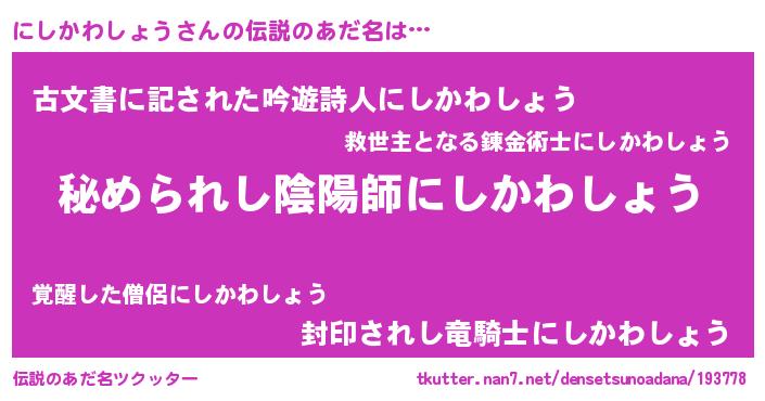 | 意味不明あだ名 | 『にしかわしょうフォーエバー』 |